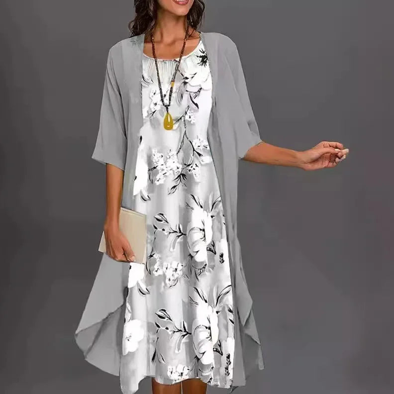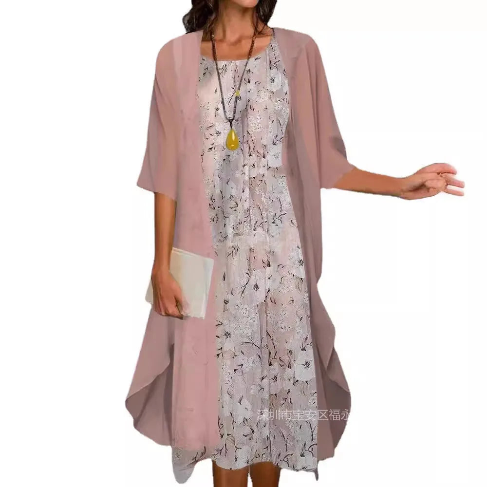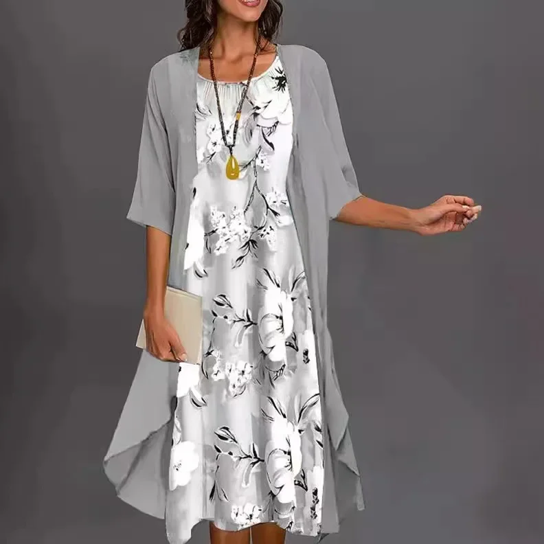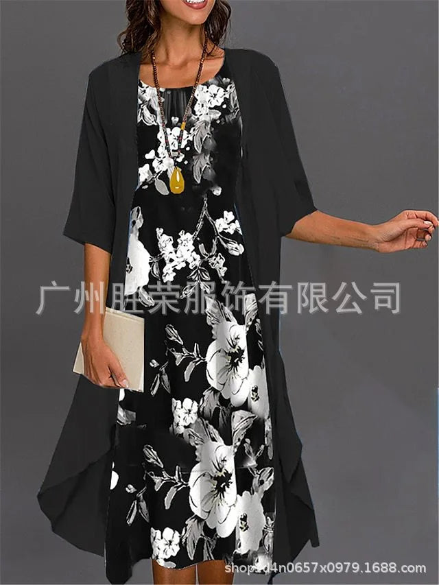 جديد عبر الحدود سبعة كم مطبوعة سترة مفتوحة تنورة طويلة الشيفون فضفاضة الخصر أنيقة التنقل الملابس النسائية