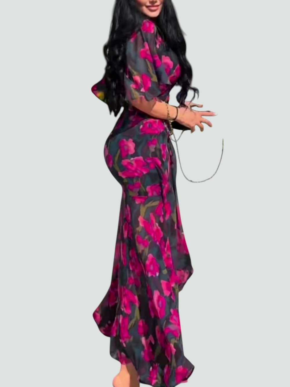 Un diseño que no pasa desapercibido: ALMUDENA combina un estampado floral vibrante con un corte fluido y favorecedor que realza cada movimiento.
