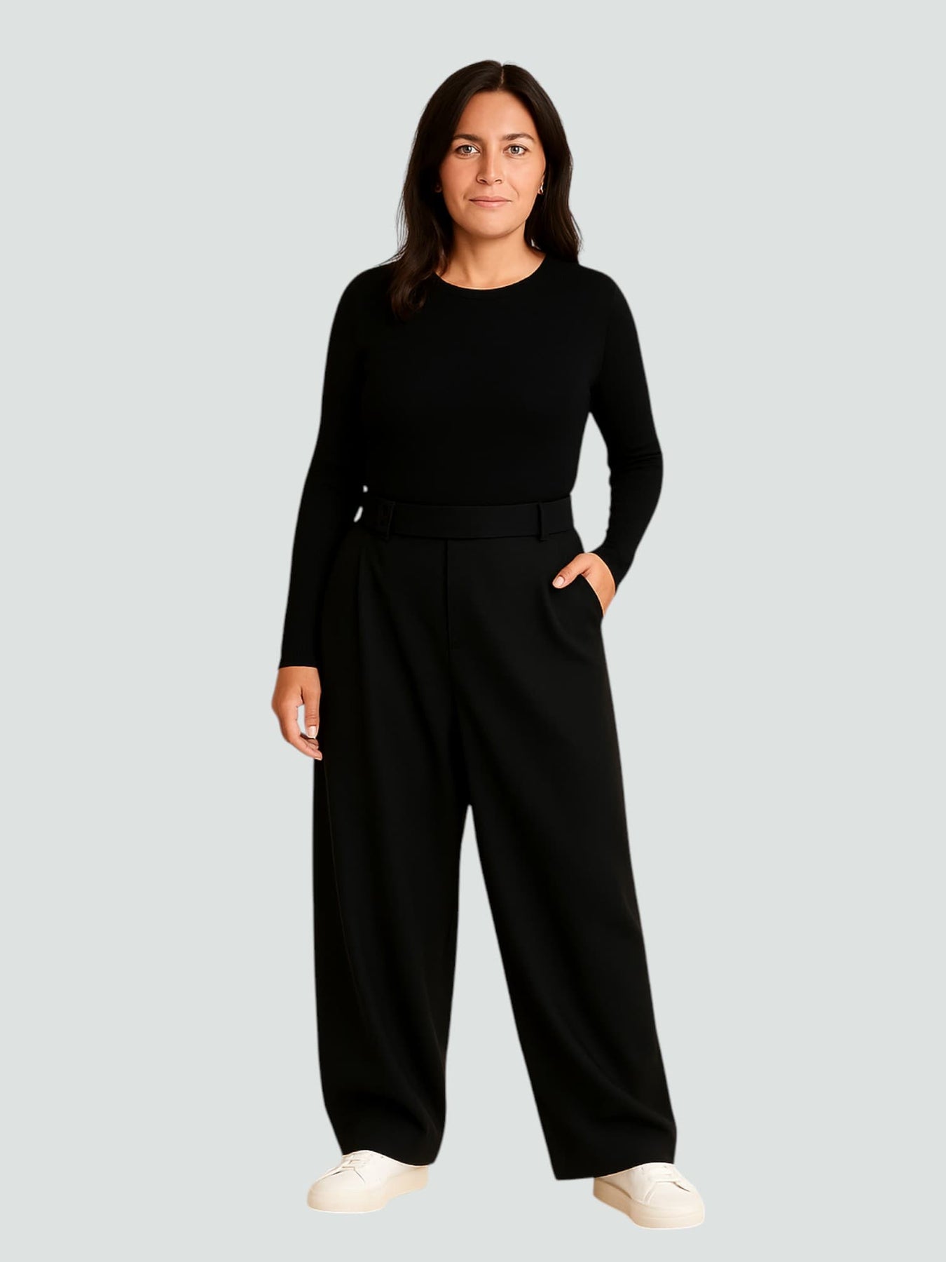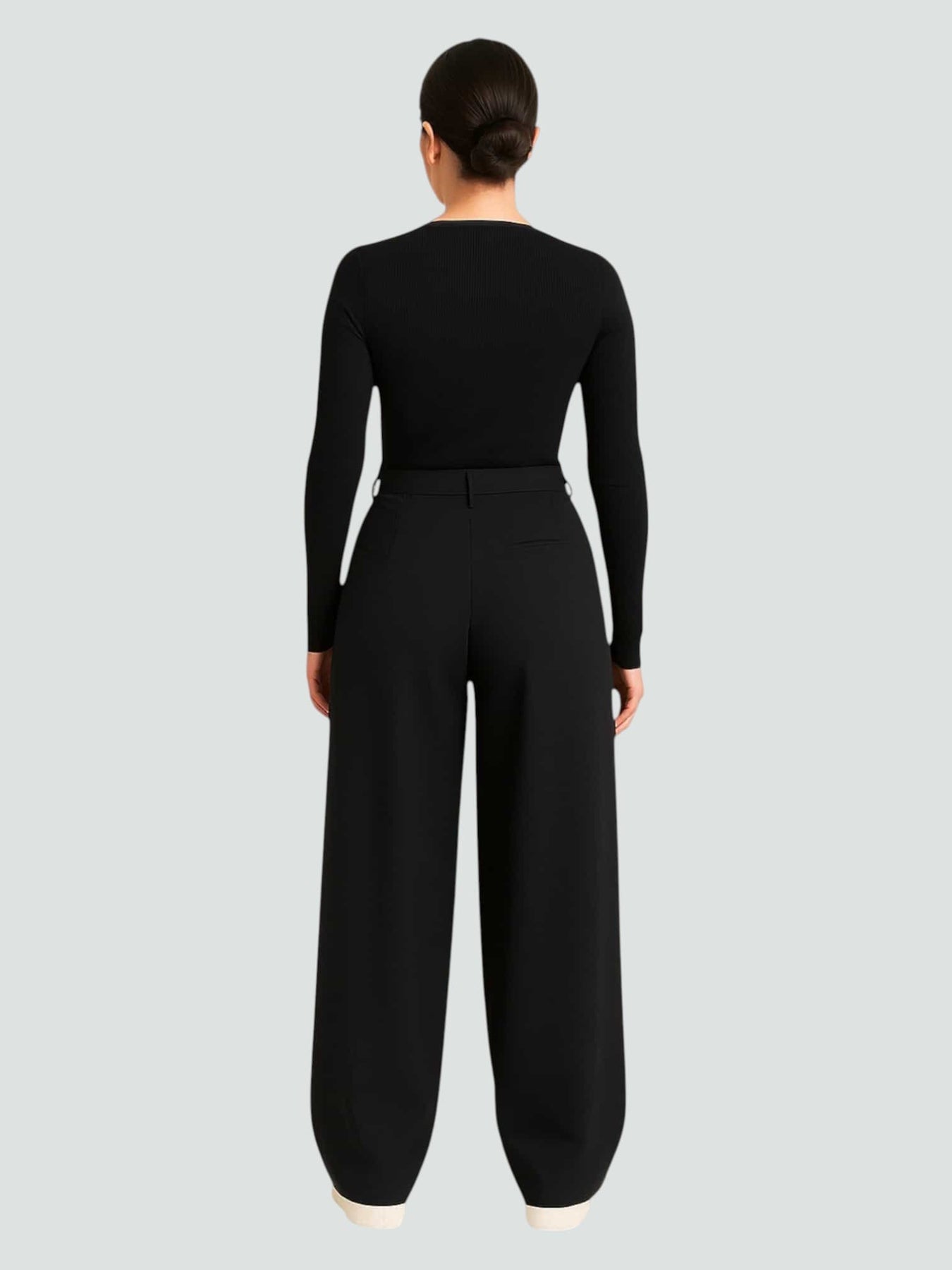 Una prenda base con estructura suave y elegancia discreta. El corte relajado se combina con una cintura precisa, creando un pantalón moderno pero atemporal. Perfecto con zapatillas para el día a día — o con tacones para un look más elevado.
