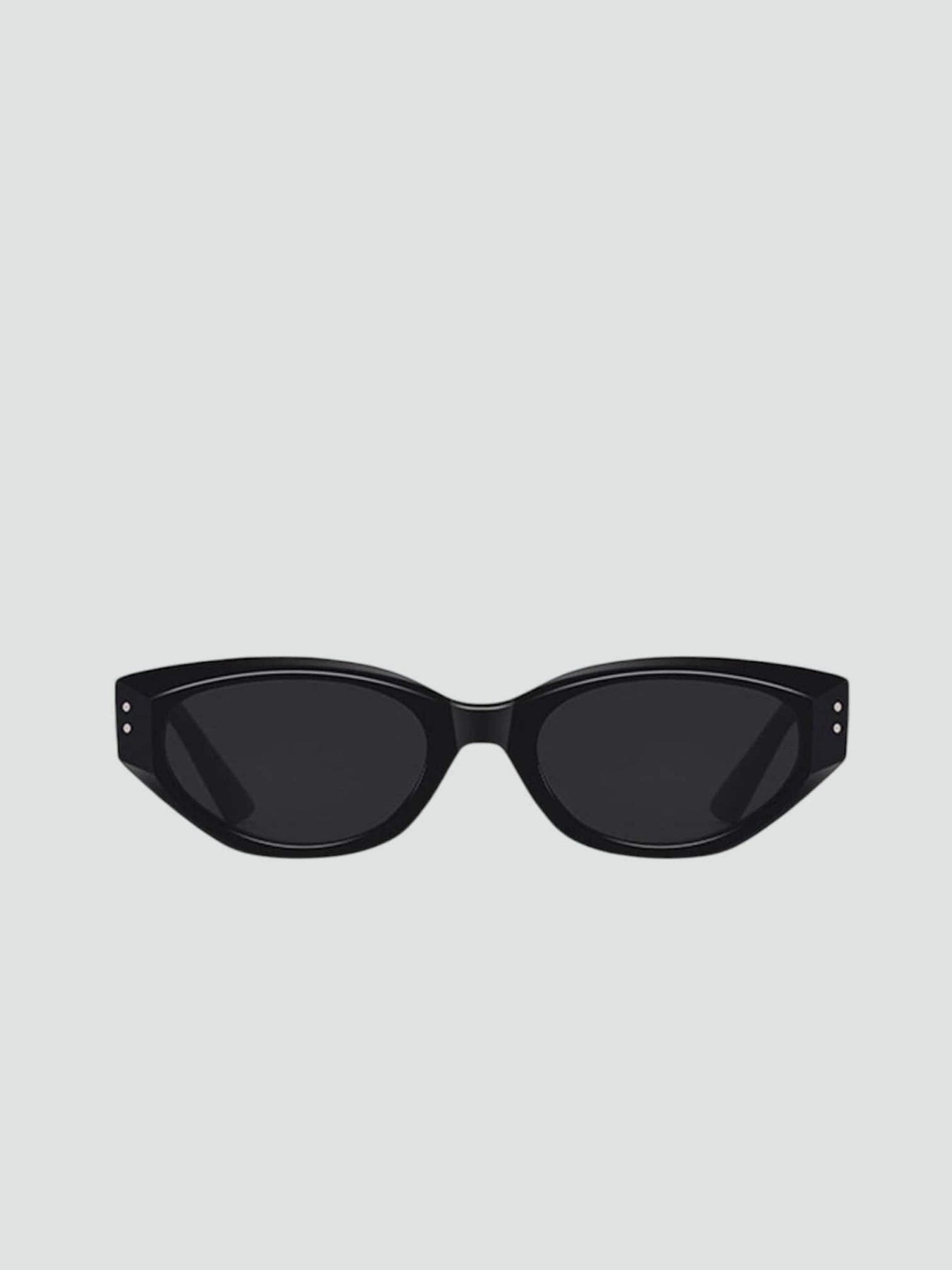Diseño retro con un toque moderno. Estas gafas de sol negras combinan montura gruesa con detalles metálicos para un look seguro y con personalidad. Perfectas para elevar tus outfits urbanos con estilo.