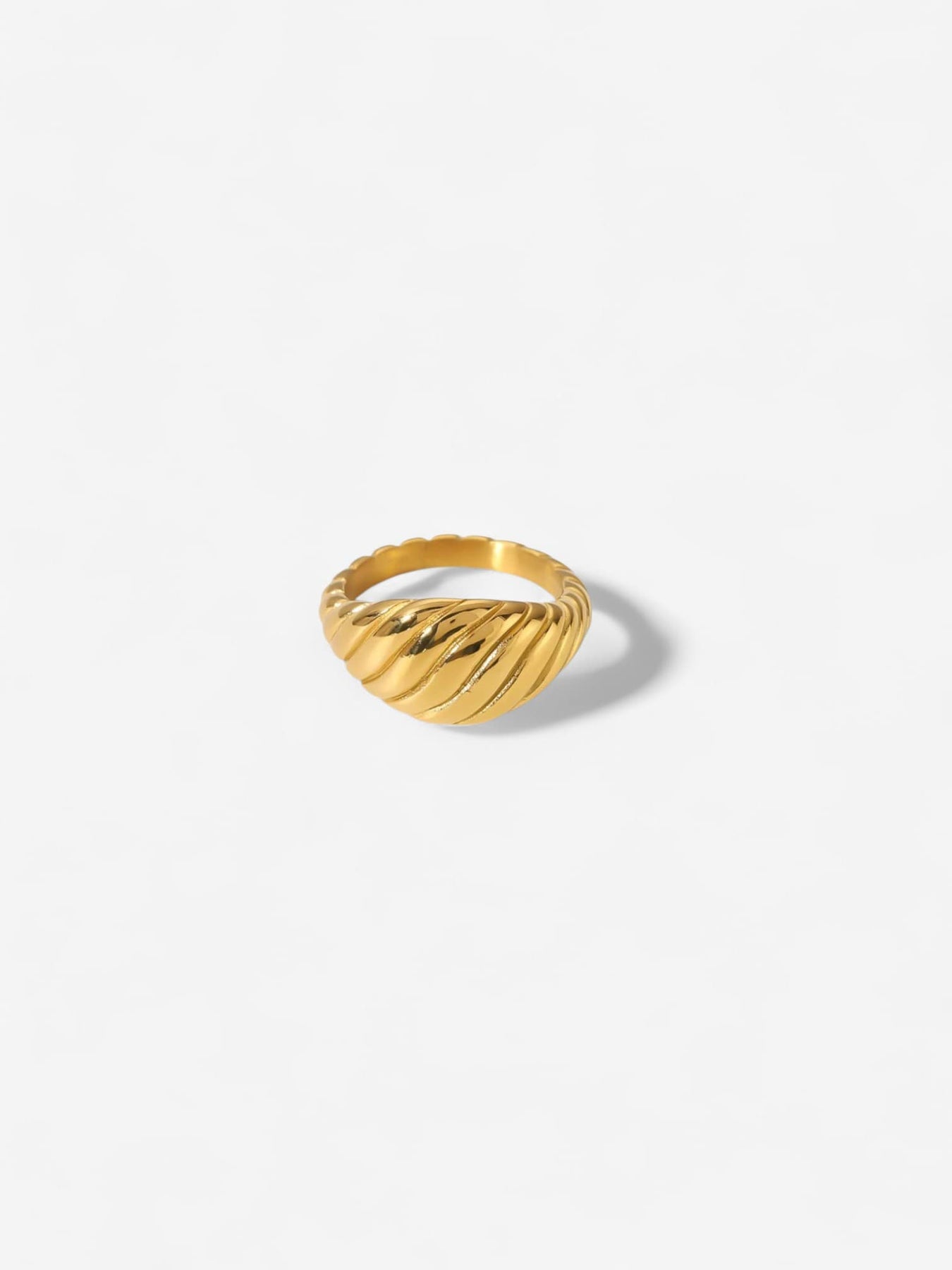 La fuerza está en la simplicidad. El Anillo Sienna Bold presenta líneas esculpidas y fluidas en una silueta tipo cúpula audaz — diseñado para que te sientas poderosa, elegante y lista para conquistar cada momento con confianza silenciosa.
