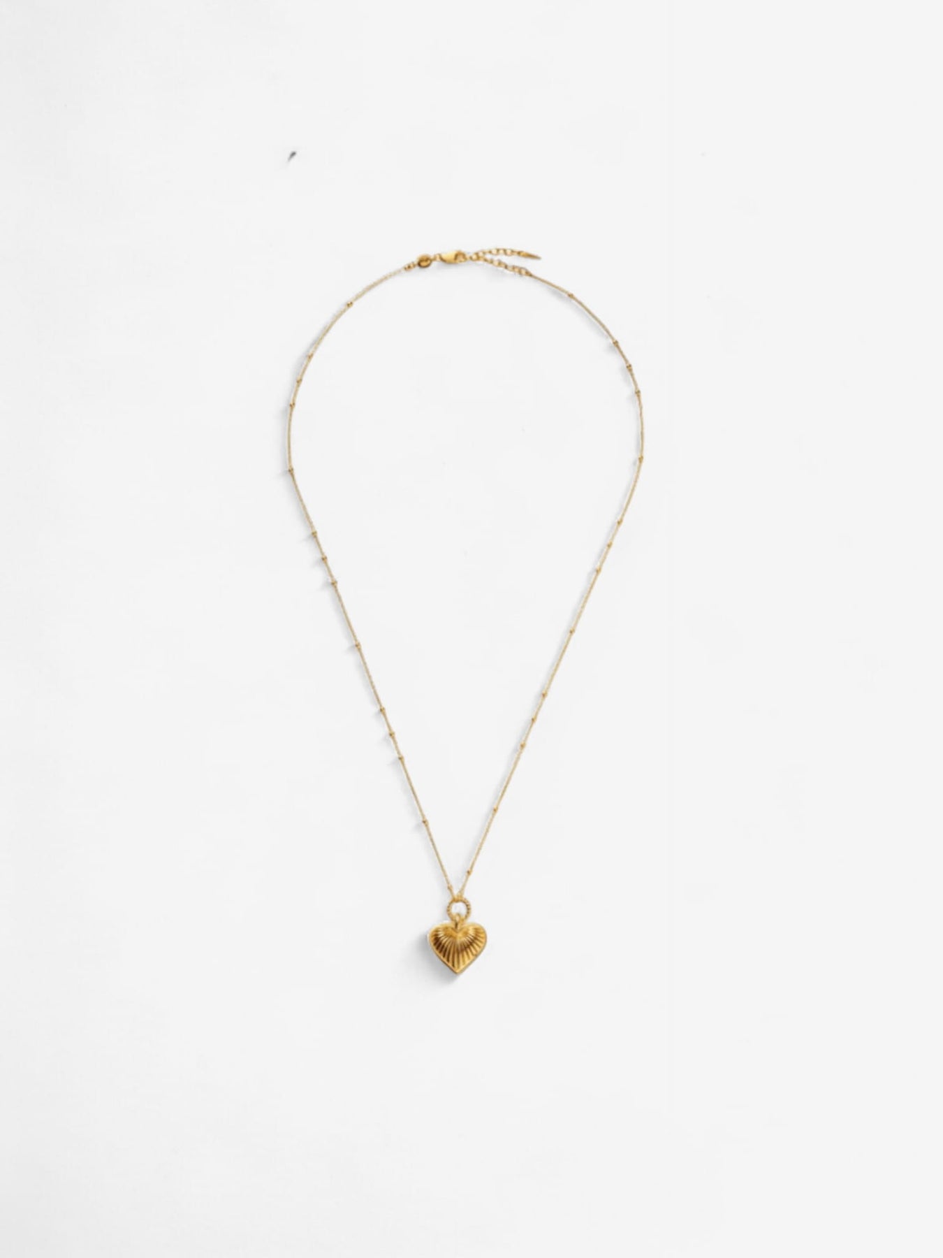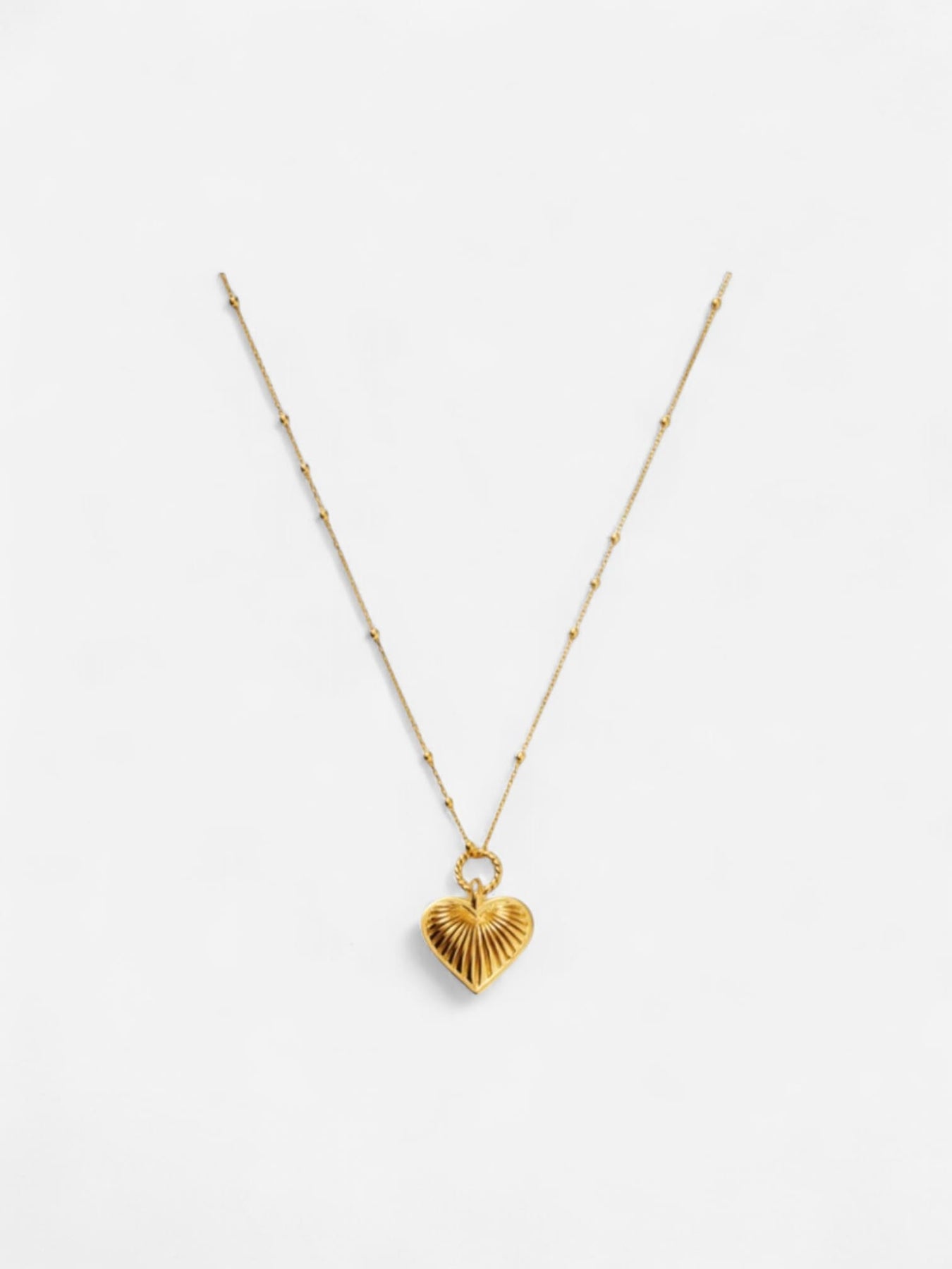 AMOUR | COLLAR CON CORAZÓN ESCULPIDO Y CADENA DE CUENTAS