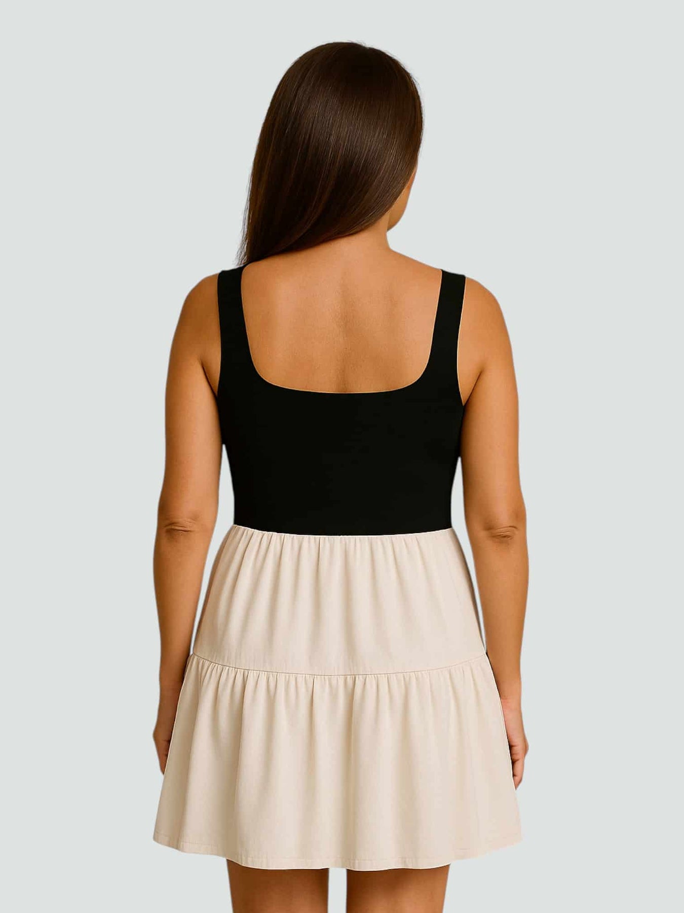 Un diseño que combina sencillez y sensualidad con elegancia natural. Su espalda abierta y la falda con vuelo lo convierten en un imprescindible para los días cálidos. Ideal para planes de verano o una cita espontánea.