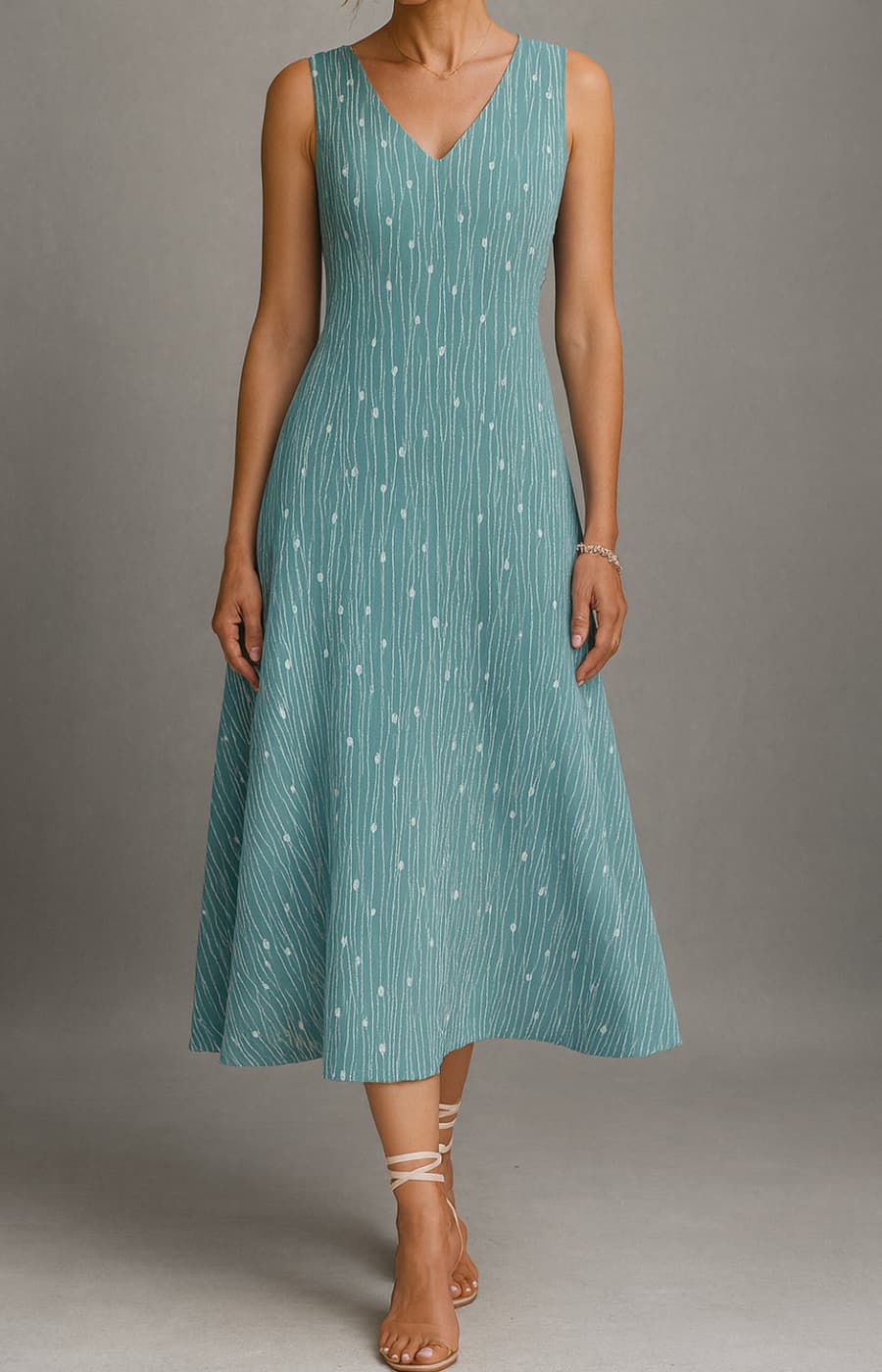 El modelo SOFÍA combina un vestido midi fluido con un estampado delicado en tonos frescos y una chaqueta a juego de corte limpio y sofisticado. Ideal para cenas estivales, reuniones familiares o simplemente para sentirte impecable sin esfuerzo. El tejido ligero y el diseño favorecedor te ofrecen comodidad y estilo en cada paso.